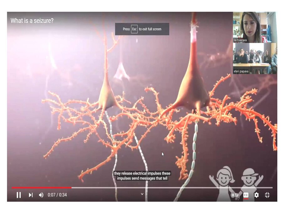 მოსწავლეებმა მოისმინეს ლექცია ეპილეფსიის, ალცჰაიმერისა და პარკინსონის დაავადებების შესახებ. მომხსენებელი: ლიკა წვერავა - ივანე ბერიტაშვილის ახალგაზრდა მეცნიერთა კლუბის წევრი.