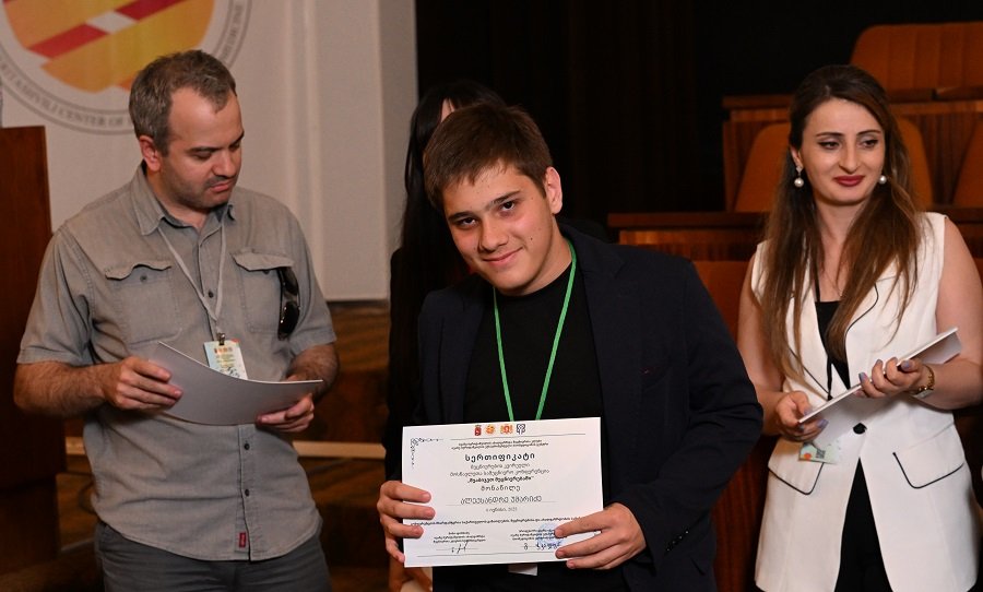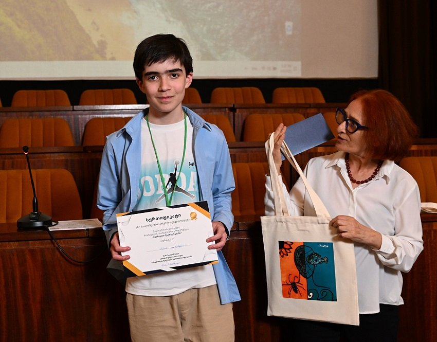 მოსწავლეთა სამეცნიერო კონფერენცია „შეაბიჯეთ მეცნიერებაში“-ის ფარგლებში საუკეთესო ზეპირი მოხსნებისა და პოსტერი პრეზენტაციის ავტორები დაჯილდოვდნენ ანი ზაალიშვილის სახელობის პრემიით და შესაბამისი სერტიფიკატით.